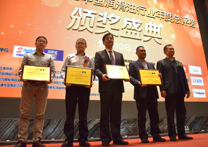 ? ? ? ??2015年11月10日,由中國潤滑油信息網(wǎng)、《潤滑油市場》雜志發(fā)起主辦,第十六屆中國國際潤滑油品及應(yīng)用技術(shù)展覽會聯(lián)合主辦的“LubTop2015中國潤滑油行業(yè)年度總評榜”活動中,經(jīng)過網(wǎng)絡(luò)公眾投票、專業(yè)市場調(diào)研、專家導(dǎo)師委員會嚴(yán)格評審流程,司能石油化工有限公司榮膺“LubTop2015中國潤滑油行業(yè)年度潤滑油OEM服務(wù)優(yōu)秀供應(yīng)商”稱號。司能石油化工有限公司營銷副總潘健康先生作為獲獎(jiǎng)企業(yè)代表,應(yīng)邀出席頒獎(jiǎng)典禮并上臺領(lǐng)獎(jiǎng)。