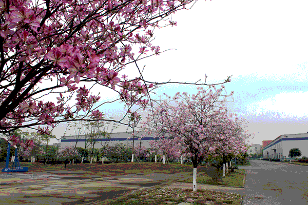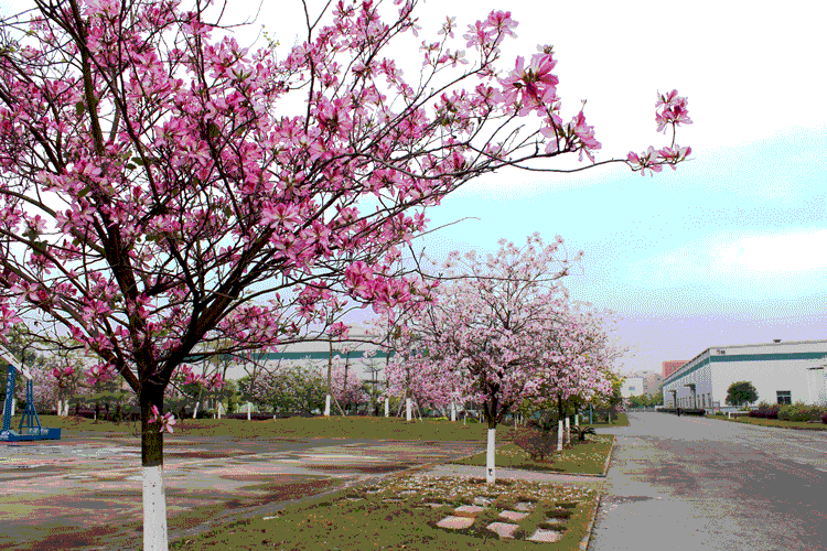 柳州基地里的紫荊花海,鮮艷綺麗,幽香撲鼻。身處辦公樓里無須開窗,都會被濃郁的花香熏醉。
