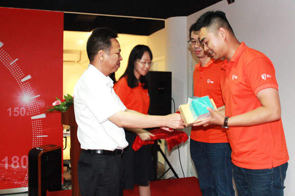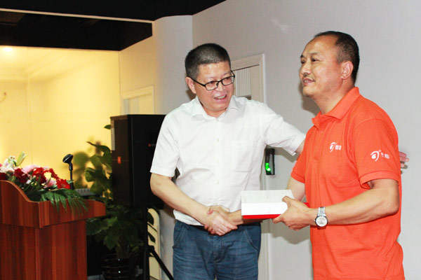△營銷公司副總經理潘健康為渠道優質客戶開發能手頒獎。